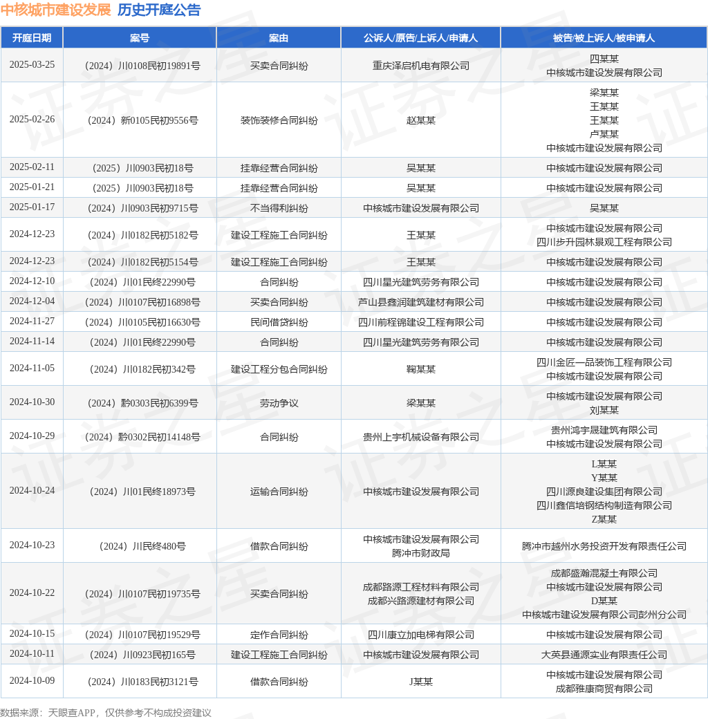 本站消息,根据天眼查APP显示,近日公布了一则中核城市建设发展有限公司作为被告/被上诉人的开庭公告,详细内容如下: